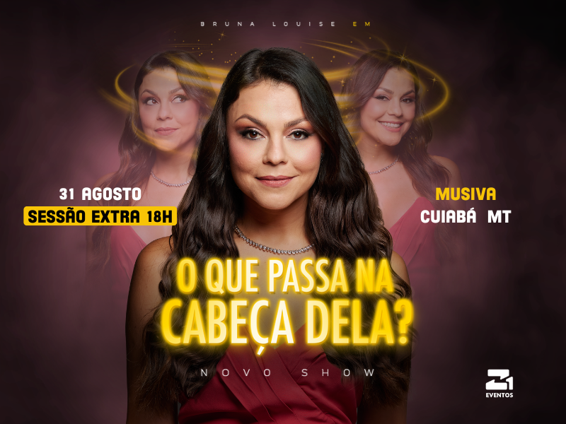 Bruna Louise – O Que Passa Na Cabeça Dela? 31/08 – Cuiabá – MT Em seu novo show, Bruna Louise segue o seu propósito de fazer a plateia gargalhar, mas também empoderando e combatendo os preconceitos, julgamentos e escolhas que tentam fazer por ela. O objetivo da comediante é, cada vez mais, fazer o público deixar o teatro com a cabeça pensativa e a barriga doendo de tanto rir. Com uma rotina que alia muito trabalho e diversão, Bruna tem muita história pra contar e, como sempre, a galera vai se acabar com suas derrotas e comemorar suas vitórias. Com muitas piadas, improvisos e interações, ela se aproxima dos espectadores, em um show bastante identificativo e forte. Nunca, na trajetória de Bruna Louise, ela esteve tão preparada, sem medos e sem vergonha. E como sempre, divertidíssima! BRUNA LOUISE Bruna Louise é um dos principais destaques da comédia Stand Up no Brasil. Suas piadas audaciosas com fortes doses de acidez a fizeram conquistar um grande número de seguidores nas redes sociais. Em um mercado dominado pelos homens, Bruna construiu seu próprio espaço. “Chegou a vez da mulher também falar o que pensa e com muito humor, por que não? Eu trago minha perspectiva sobre o mundo, tiro sarro dos meus próprios problemas e acho que essa é uma maneira de quebrar alguns comportamentos dentro da comédia e, talvez, normalizar alguns tabus por aí.”, afirma a comediante. E o trabalho não para. Bruna Louise participou recentemente do Reality Show LOL Brasil, projeto de sucesso da Prime Video e é sempre destaque na programação do Comedy Central. Está na Netflix com o especial Lugar de Mulher e, ainda esse ano, retorna ao streaming com o seu solo, disponível para todo o planeta, o Especial Demolição. Com seus números expressivos, mais de 3 milhões de inscritos em seu canal no Youtube e mais de 6 milhões de seguidores no Instagram, Bruna Louise se consagrou como um dos maiores nomes do Stand Up nacional. SERVIÇO: 31 de Agosto –Domingo – 31/08/2025 Sessão Extra: 18h Sessão Principal: 20h (ESGOTADA) Bruna Louise – “O Que Passa na Cabeça Dela?” Local: Musiva Endereço: Av. Manoel José de Arruda, 4435 – Porto, Cuiabá – MT, 78055-498 Valores: CADEIRA VIP R$ 120,00 (Inteira) / R$ 60,00 (Meia) – ESGOTADA CADEIRA MUSIVA R$ 100,00 (Inteira) / R$ 50,00 (Meia) VENDAS ON LINE: www.z1.com.br RELAÇÃO MEIA ENTRADA: – Estudantes (carteirinha, boleto e comprovante de matrícula – qualquer destes comprovantes), professores, idosos (à partir de 60 anos), deficientes físicos e doadores de sangue (apenas com carteirinha). CLASSIFICAÇÃO: 16 anos. Menores de 16 só entram acompanhados de um parente maior de idade. PCD – Retirada somente 30 minutos antes da sessão.Lei: 5.634 revogada e substituida pela Lei Municipal nº 6.605/2020Art.1º Fica assegurado às pessoas com deficiência, o direito de acesso gratuito em eventos sócio-culturais em locais públicos e privados, realizados no município de Cuiabá. (LIMITANDO-SE A CAPACIDADE DE 2% DA CAPACIDADE) PRODUÇÃO LOCAL: Z1 Eventos Informações: Whatsapp (67) 98182-2227